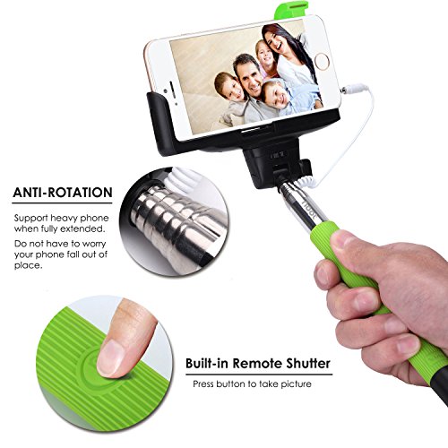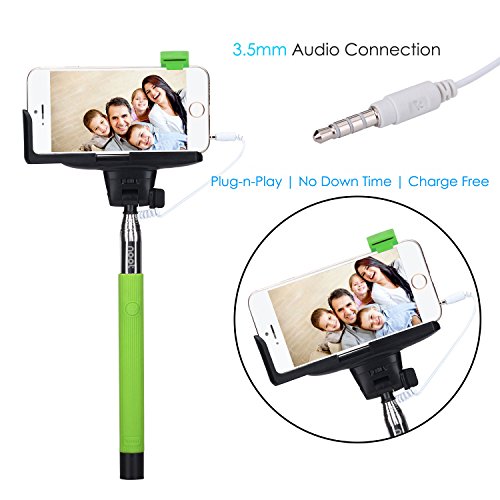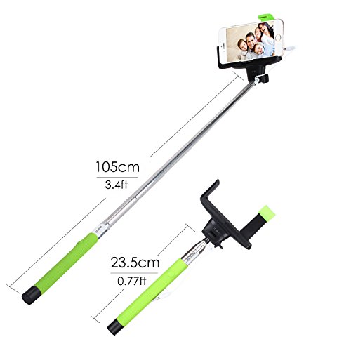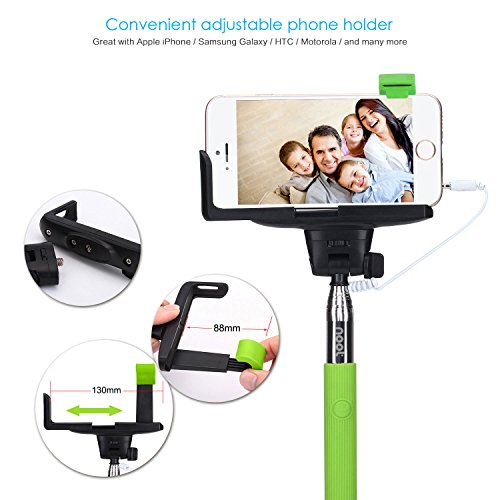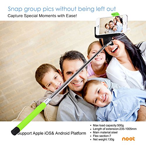 - Title : Selfie Stick, NOOT PRODUCTS® Self Portrait [Battery Free] Extendable Handled Stick with Adjustable Phone Holder & Built-in Remote Shutter Designed for Apple, Android Smartphones - Green