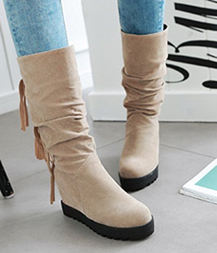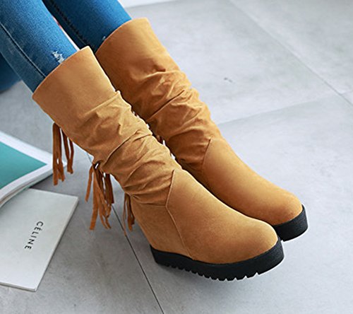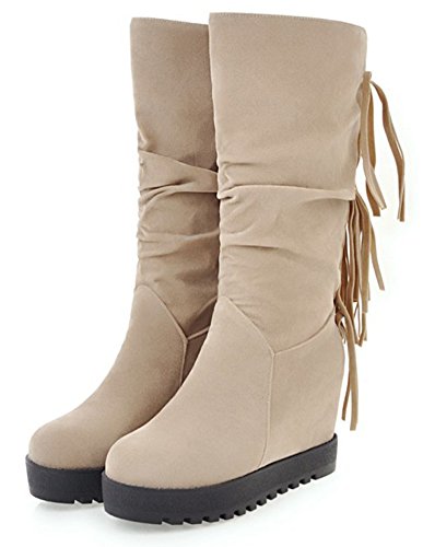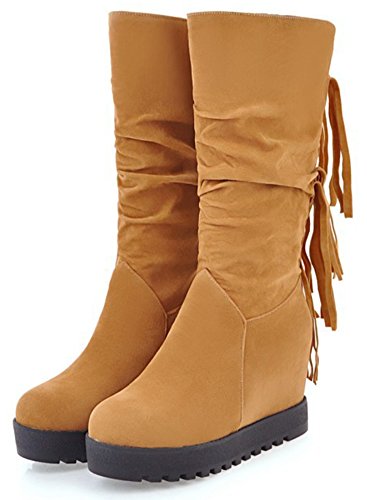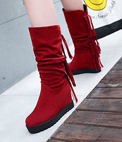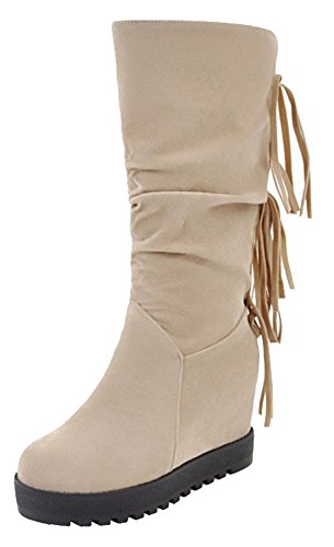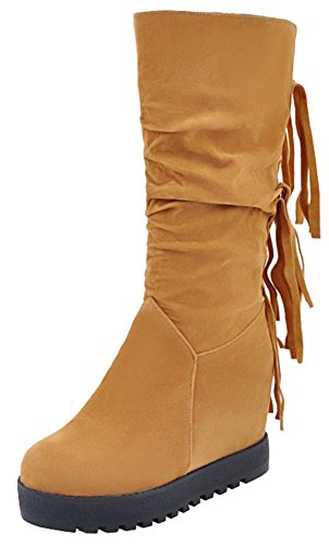 Binding : Apparel Product Description A pair of suitable boots means a lot to a lady. It can not only prevent her feet from the harm from the whether, also, it can help she well display her vintage and feminine temperament. However, have you get prepared to welcome the cool weather? You need this pair of boots. With this pair of boots with heighten inside you don't need to worry about that you would get tired easily. Just as you can see, this pair of boots has wedge heel which make them wears very comfortable and can well display your charm and femininity. And its lug sole can well antiskid, you don't need to worry when you step on the slippery street. What's more, it has one of the most popular elements--fringes which is fashion and vivid, can well display your charm and individuality. Still hesitate? Just let them share your life with ease. 0