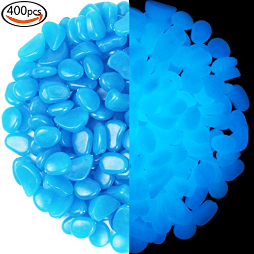 Whonline 400 Pcs Glow Pebble Stone for Garden Walkways Decoration, Blue
