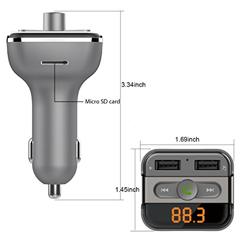 Miuko Wireless Bluetooth Car Charger with FM Radio Transmitter for Handsfree