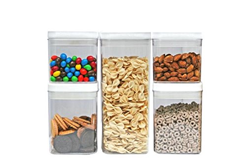 Kitchen Pro 101-Tight Food Storage Container Set - 5-Piece Set - Durable Plastic - BPA Free - Clear Plastic with White Lid