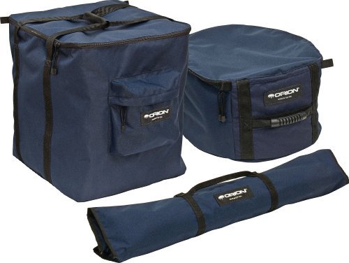 The beauty of a big truss tube Dobsonian telescope is that it can be disassembled into conveniently sized components for easy transport. And transporting the SkyQuest XX14 will be much easier, and the components much better protected, with this set of cases designed just for the XX14. The set includes three cases plus a secondary mirror cover. Each case is made of durable 600-denier polyester/nylon material with a urethane coating and a 100% nylon lining, and double stitched for extra strength. There are separate padded cases for the upper and lower optical tube sections as well as a case for the truss poles. The poles slip into separate compartments to prevent direct contact among them. The lower tube case also has a zippered pocket to hold accessories. All the cases have carrying handles. Lastly, the soft nylon secondary mirror sock is included to keep the mirror free of dust when the scope is idle. Keep your SkyQuest XX14 Truss Tube Dob looking like new and get it to your observing site more easily and securely with this set of custom cases. Made in the U.S.A.Feature
