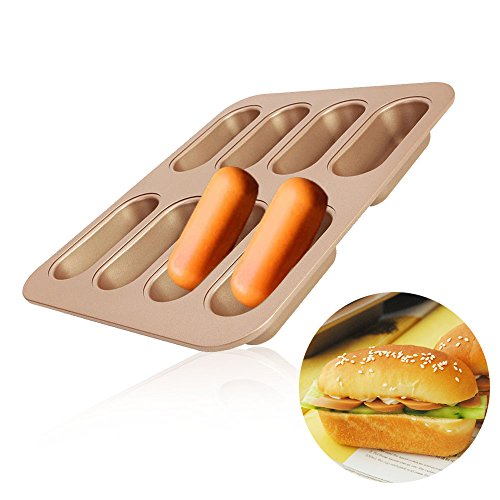 Hotdog Pan 8cup Non-stick Hot Dog Bun Pans Pancake Bread Baking Tray Champagne