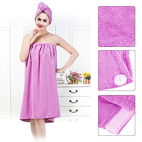 - USE RANGE: This set includes 1pc wrap towel and also 1pc hair drying cap.It suitable for spa,gym,shower,sauna bath,pool,beaches,locker rooms etc