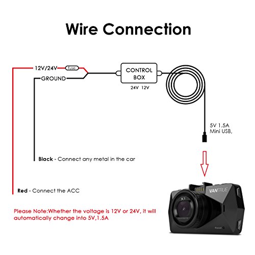 Vantrue upgrade dash cam hardwire kit 13 Feet Mini USB Hard Wire Car Charger Cable Kit Compatible with OnDash N2 /X1 /X2 /X3 /R3 /V1 /V1P /C1 /A118 /A119 /G1W,GPS Navigator,Radar detector