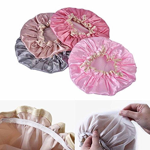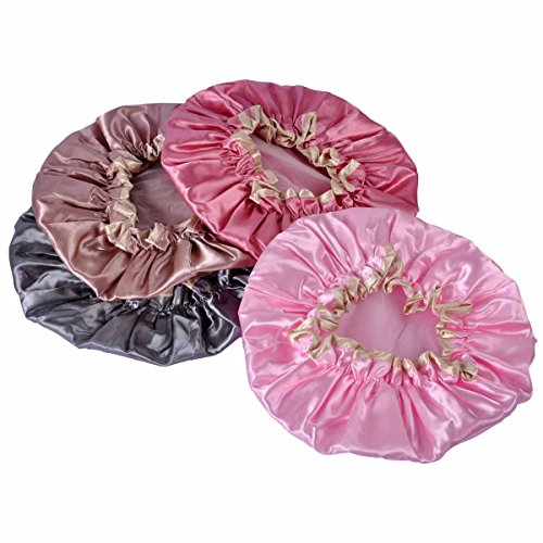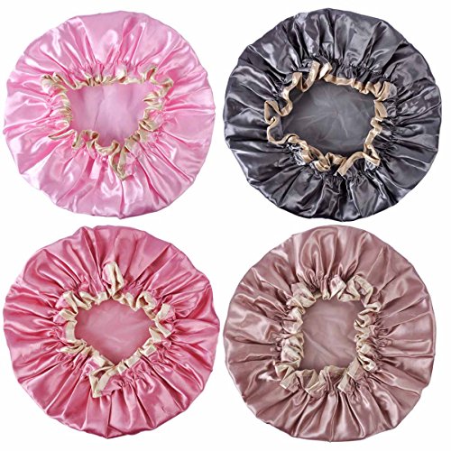 Lady Up 4 Pack Elastic Double-Layer Waterproof Shower Cap Spa Shower Hat Women Salon Hat