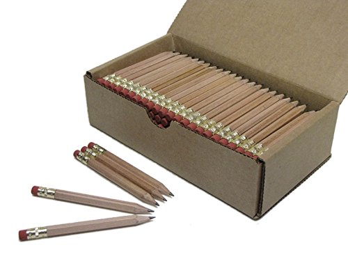 Half Pencil with Eraser, Golf, Events, School, Hexagon, #2, Sharpened, Box of 144. Color: Natural Wood Grain