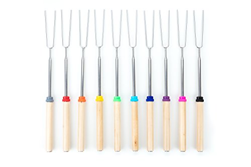 Campfire Accessories Marshmallow Roasting Sticks: Smores Skewers & Telescoping Fork Gift Set - Camping Supplies for Kids - 10 Stainless Steel Forks