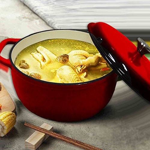 -. Title : Enameled Cast Iron Round Dutch Oven,Red Color with Lid,6-Quart,Kitchen Cookware