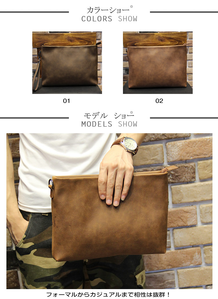 | 大人の遊び心が詰まった逸品。フォーマルからカジュアルまで相性は抜群!普段使いからパーティ、デートにまで幅広く役立ちます。コンパクトなつくりなので持ち運びに便利です。 大人の男に磨きをかける毎日使いたいクラッチバッグ! | |