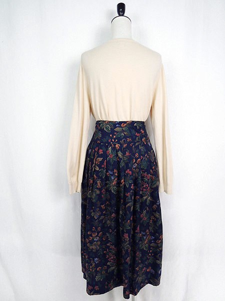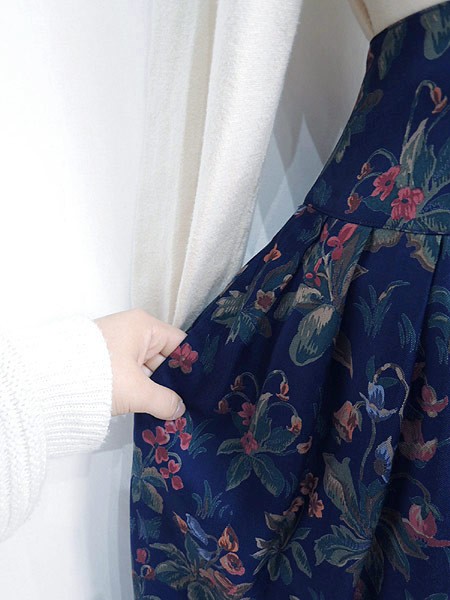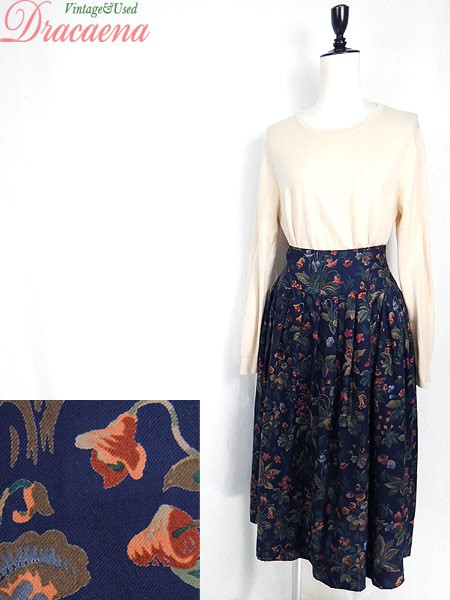 Ladies ブランド カラー紺・赤・オレンジ メール便不可 コンディション★★★ 素材レーヨン100% 表記サイズ6 スタッフコメントネイビーカラーに花柄が映えてとてもガーリーな雰囲気のスカートです。レーヨン素材なので着心地も良いです◎。裾付近に糸引きあり 実寸サイズ 着丈 78 cm ウエスト 25.5 インチ( 65 cm) ※ウエスト・ヒップ以外は平置き採寸【code】#b