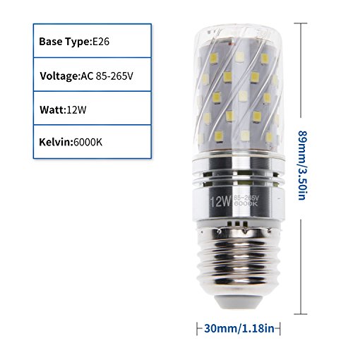 Sagel E26 LED Corn Bulbs, 12W LED Candelabra Light Bulbs 100 Watt Equivalent, 1200lm, Cool White 6000K LED Chandelier Bulbs, Base E26, Non-Dimmable LED Lamp, Pack of 4