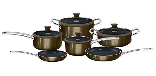 -. Feature : 10 piece set: 5QT Dutch Oven with cover, 9.5" Sauté with cover, 3QT sauce pan with cover, 1.5QT sauce pan with cover, 10" fry pan, and 8" fry pan / Induction safe, Nonstick coating / Materials: Ceramic, Glass Lids, Aluminum / Interior: Titanium ceramic coating, Exterior: Metallic effect, Bottom: Induction bottom, Cover: Glass cover with Silicone rim and Silicone Knob / Care: Dishwasher safe, Thickness: 2.8mm