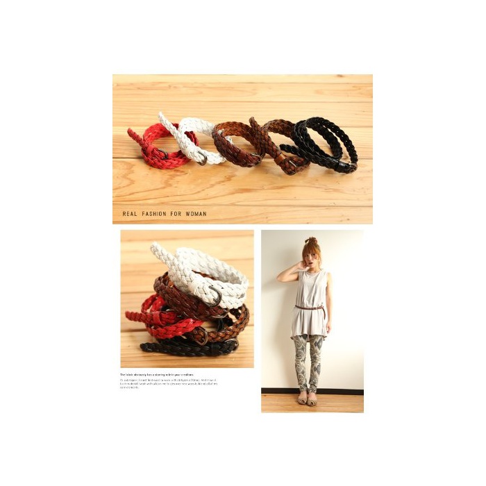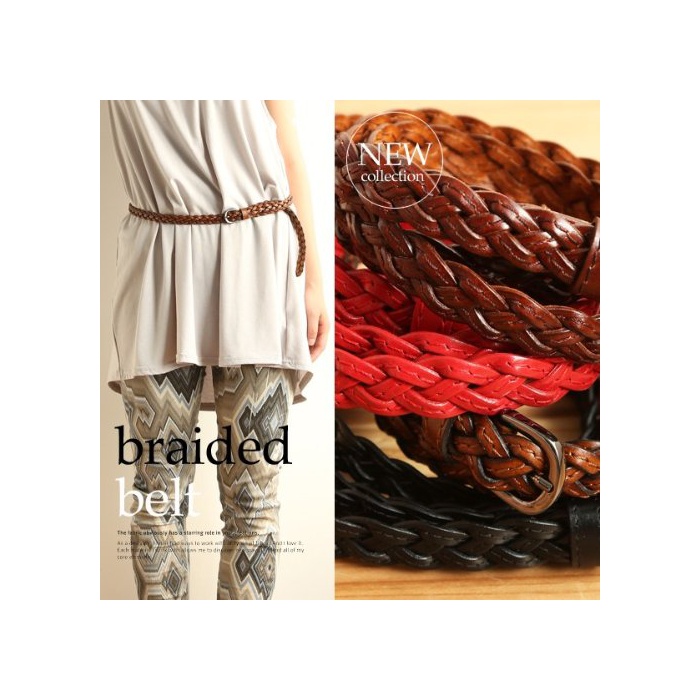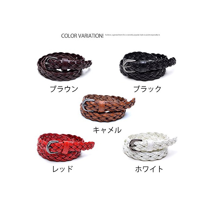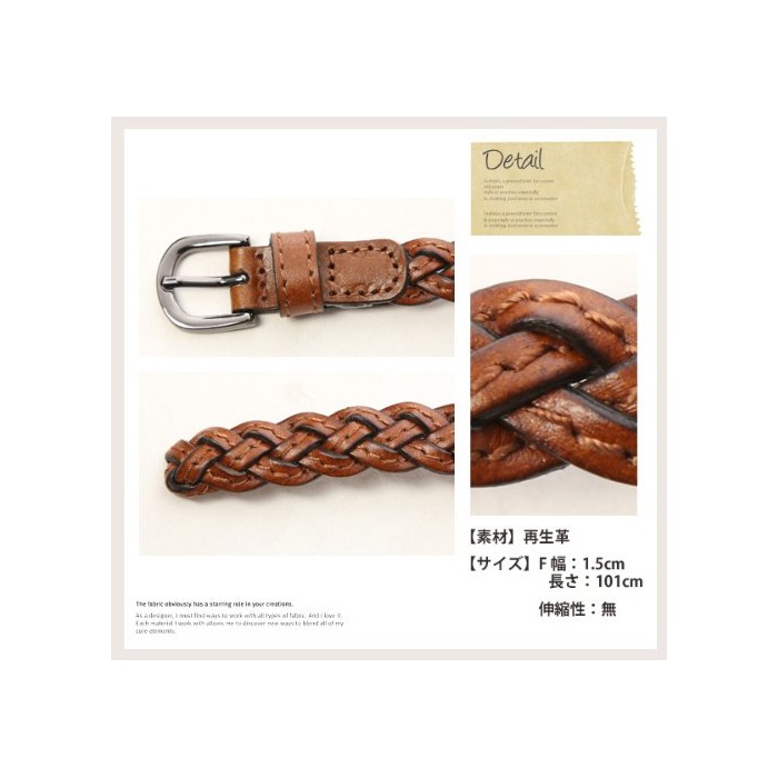 원본상품명: [ECO] 再生革のメッシュ細ベルト 三つ編みデザイン / レディス 革ベルト 5色