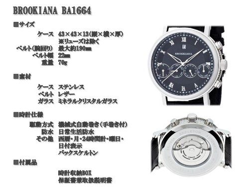 상품명: [블루《기아나》]BROOKIANA 자동 감기 4 연멀티 캘린더 블랙×블랙 레더 BA1664-BK 맨즈 손목시계