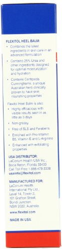 Studio : EULACTOL USA Publisher : EULACTOL USA Binding : Health and Beauty Product Description Neglecting your feet can cause problems like rough and dry skin. It makes sense to take care of your feet--this is how Flexitol can help! Flexitol Heel Balm has been formulated to moisturize and hydrate rough and dry feet. With daily use it keeps your feet soft, smooth and supple. Flexitol Heel Balm also helps prevent friction during exercise and when "breaking in" new shoes.