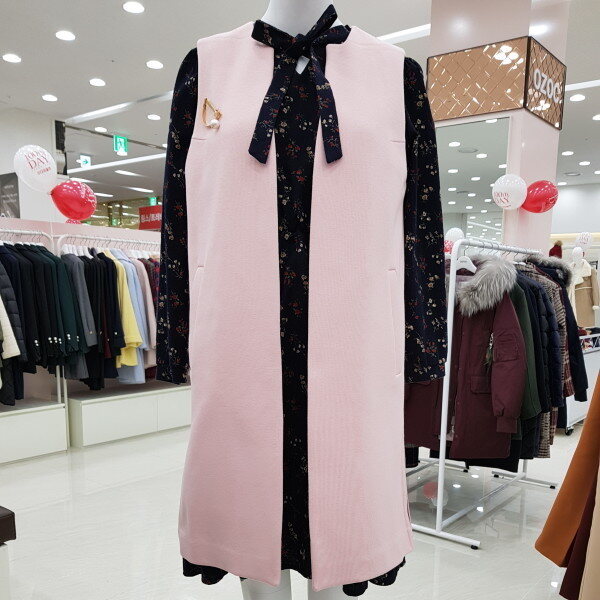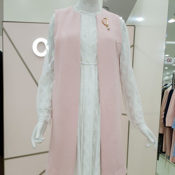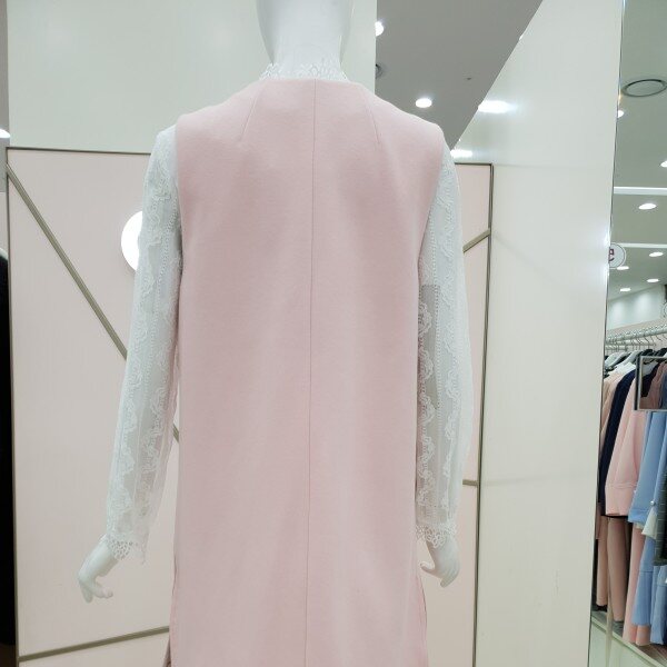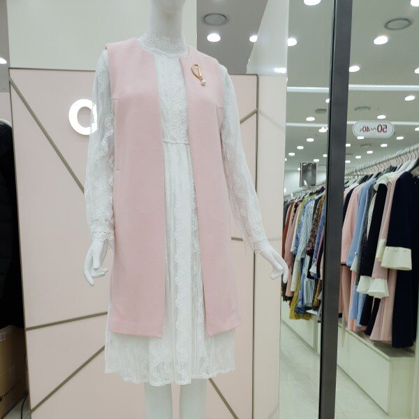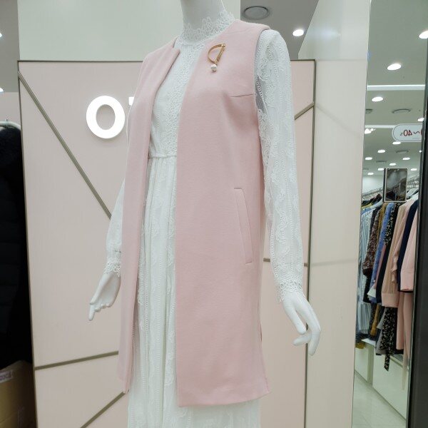 롱한 기장의 면 베스트에요~앞쪽의 진주 브로치가 포인트랍니다연한 핑크컬러로 짙은컬러의 옷과 매치하시면 좋답니다
