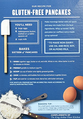 King Arthur Flour award-winning gluten-free mixes taste so good, everyone will enjoy them – whether you're on a gluten-free diet or not. Using King Arthur Flour Gluten-Free Pancake Mix will make Sunday mornings a breeze. Whip up a batch of tender, fluffy delicious pancakes the whole family will enjoy. Makes about sixteen 4 inches pancakes.Feature