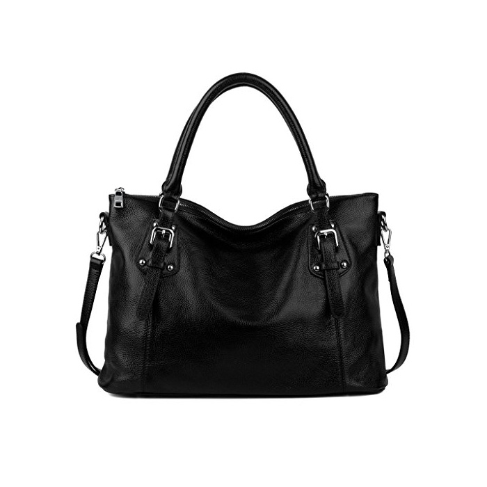 Yaluxe 레이디스 빈티지 스타일 소프트 가죽 비즈니스 가방 통근 백 손 토트백 빅 숄더백 블랙