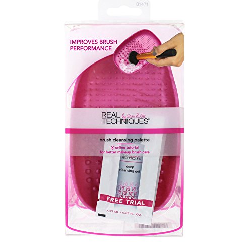 Great makeup application starts with a clean brush. The brush cleansing palette helps sweep away makeup, oil, and impurities from bristles to give you truer, more consistent color application. performance grade silicone: lightweight and ergonomically designed to fit comfortably over your hand exclusive multi textured surfaces: designed to gently work between the bristles for enhanced deep cleansing Step 1: Slip hand into the palette and squeeze a drop of our brush cleansing gel onto the tool. Add warm water to the palette. Step 2: Swirl brush into the gel and water across the various surfaces until the brush is clean. Rinse bristles thoroughly, being careful to not fully immerse the base of the bristles. Squeeze out the excess water. Step 3: Rest your brushes across the surface of the tool to dry or use the panoramic case from our sets (sold separately) to dry brushes upside down. * Tested using Real Techniques Brush Cleansing Palette and Brush Cleansing gel versus hand cleaning with water