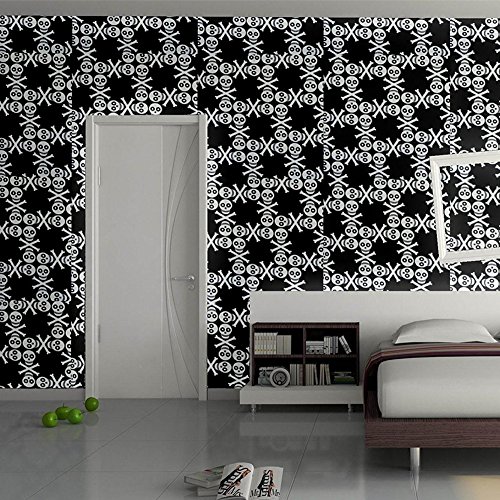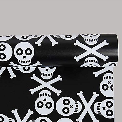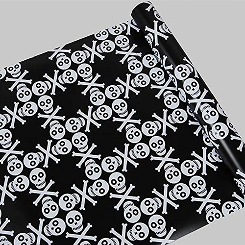 SimpleLife4U Black White Skull Shelf Liner Countertop Door Sticker Vinyl Contact Paper 17.7inch by 9.8 Feet