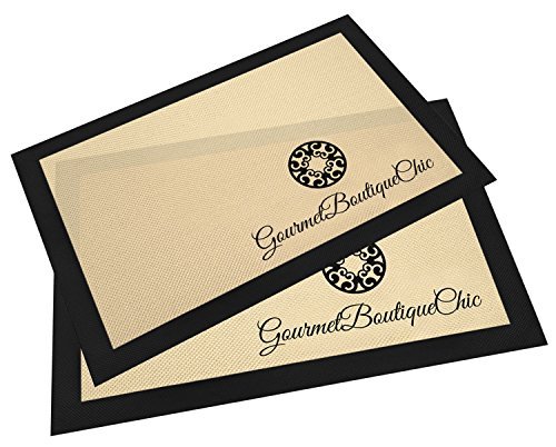 Gourmet Boutique Chic Professional Silicone Non-Stick Baking Mat 2pc Twin Pack Set for Half Size Cookie Sheets