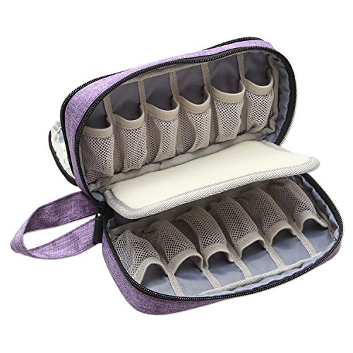 Double Layer Design. Several slots and pockets for storing 12 bottles of essential oils (5ml-15ml), extra empty roller bottles, openers, droppers, and other small accessories.