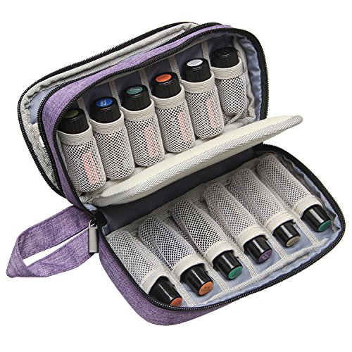 Luxja Essential Oil Carrying Case - Holds 12 Bottles (5ml-15ml, Including Roller Bottles), Portable Double-Layer Organizer for Essential Oil and Accessories,...