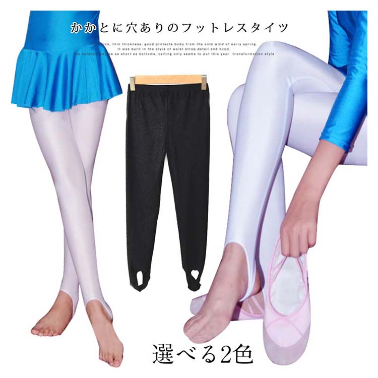 | かかとに穴ありのフットレスタイツ大変ソフトで肌に優しい素材がストレッチも効いてぴったり脚にフィットします。かかとに穴が開いているので滑りにくい!シンプルのブラックとホワイトなので、どんなレオタードにも合いますよ。普段着にレギンスとして履いてもOK!バレエだけでなく、体操や新体操やダンスなどのレッスンにも最適。 | |