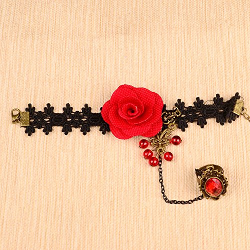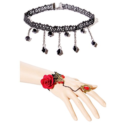 Binding : Apparel Product Description Keylleen Gothic Retro Lace Collar Choker Necklace Rose Flowers Wristband for Party Bridal