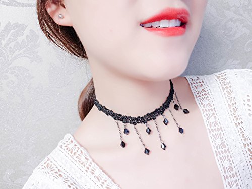 Specifications: Quantity: 1 x Lace Necklace, 1 x Rose Flowers Wristband Material:Lace Rhinestone Alloy Size:Necklace Size: About 12 inches (30cm),Bracelet: Adjustable Size: 15cm-22cm High Quality handmade lace Collar necklace jewelry for women