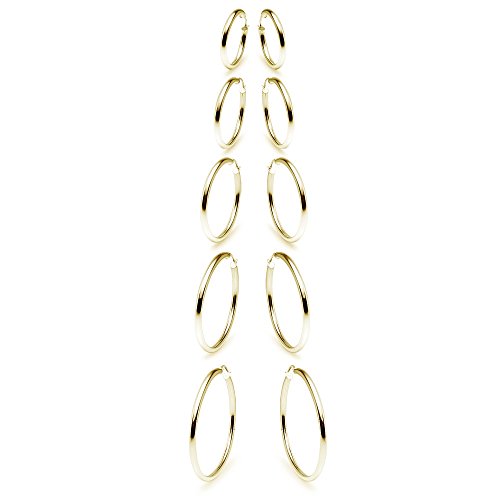 FEATURE - This hoop jewelry set display five pairs of high polished round hoops earrings in various sizes. The set includes a pair of 30mm, 35mm, 40mm, 45mm and 50mm hoop earrings. This earrings set in fine jewelry should be an addition to your jewelry collection. It can be purchased as hoop earrings for men, hoop earrings for women or hoop earrings for teen girls.