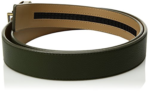 You've never worn a more comfortable belt. Genuine leather belt with brushed chrome buckle fits waist 28 - 36 with micro-adjustable 32-position ratcheting track system for custom fit. Can adjust throughout the day.Feature