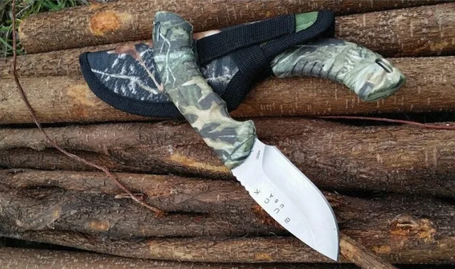 | [해외] 벅 캠핑 고정 블레이드 나이프 스테인레스 스틸 실버 핸들 직선 칼 나일론 칼집 |