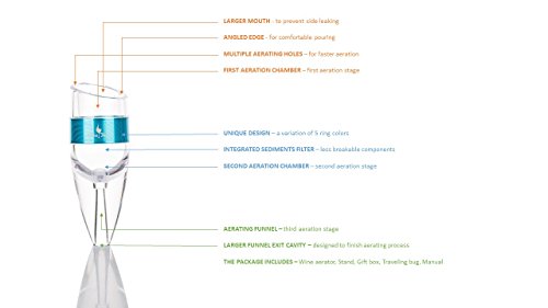 -. Feature : CREATED FOR HIGH EFFICIENCY PERFORMANCE - new improved Wine Trick wine decanter's design speeds up wine aerating process with ease and convenience. Six aerating wholes, which are located around pouring aria, allow a high efficiency performance reducing the time it takes to pour a glass of wine. Angular and larger mouth, allows to pour wine through wine diffuser for instant aeration and mixes proper amount of air in right amount of time with no side leaking / NEW 2017 UPGRADED ELEGANT DESIGN - are you sick of monotone black or silver wine aerator colors? If your answer is Yes? you are on the right page. Our wine diffuse pourer is available in 5 different colors variation (Gold, Silver, Blue, Red and Purple). Its elegant design will add a level of refinement to your wine drinking experience and is the perfect gift for wine lovers / A PERFECT GADJET FOR - your kitchen, bars, restaurants, catering services, and banquet halls. Treat your guests to an indulgence such as this by ensuring that every time a glass of wine it is poured through Wine Trick wine aerator / MANUFACTURED WITH HIGH QUALITY MATERIALS - The Wine Trick wine decanter is manufactured with high quality FDA approved materials. Eco-friendly safe acrylic and aluminum colored ring with a silicone stand will guarantee you an easy and safe storage in your kitchen / LIFETIME MANUFACTURER'S GUARANTEE - we offer a lifetime money back guarantee with every purchase. If you are not completely satisfied with your aerator, we will refund your purchase with no exception. THE STOCK IS LIMITED