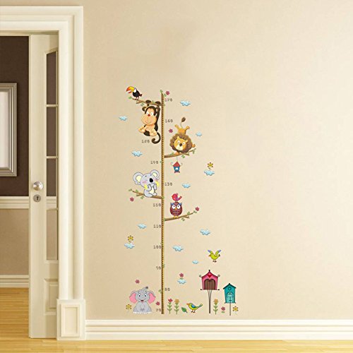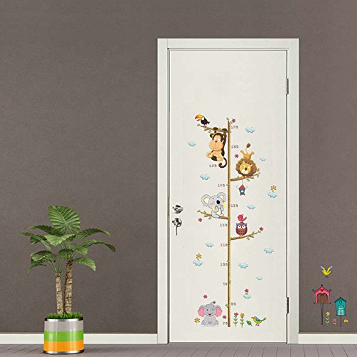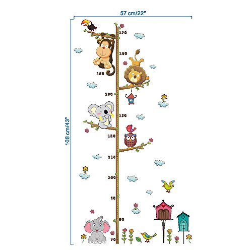DecalMile Cartoon Elephant Lion Zoo Height Chart Decals Children'S Room Nursery Removable Wall Stickers Murals