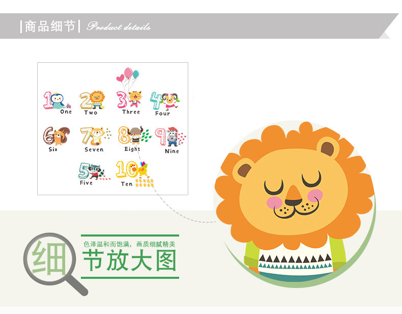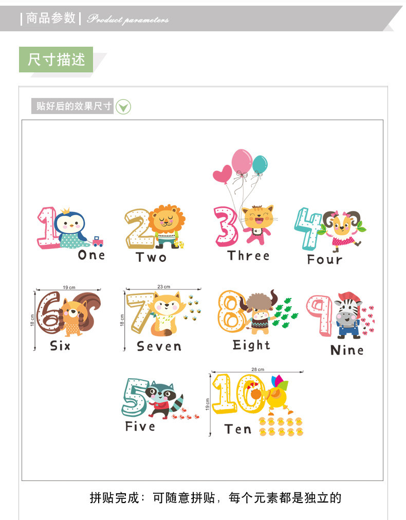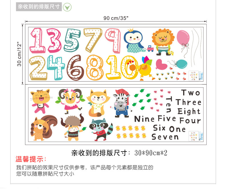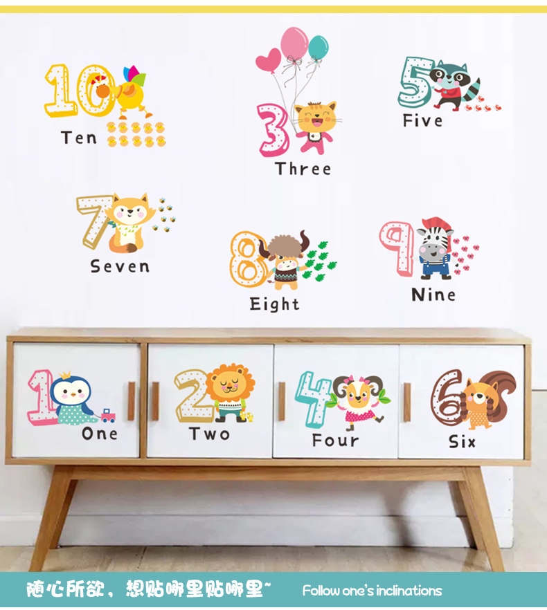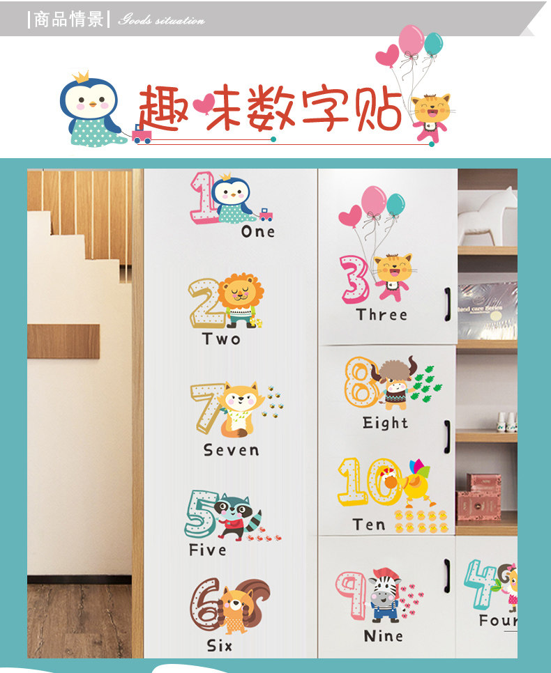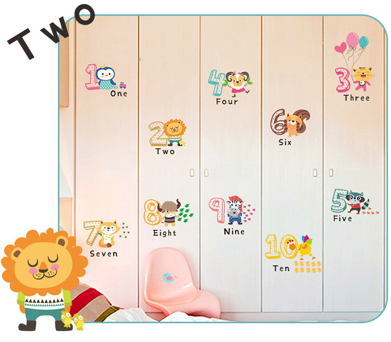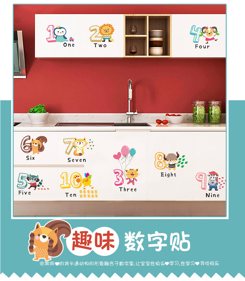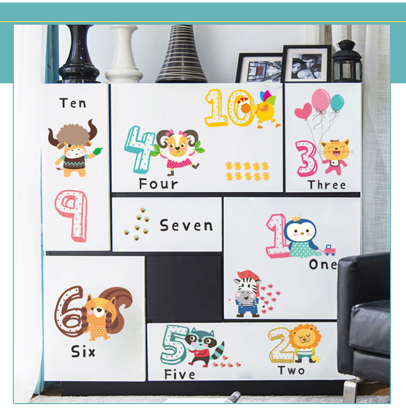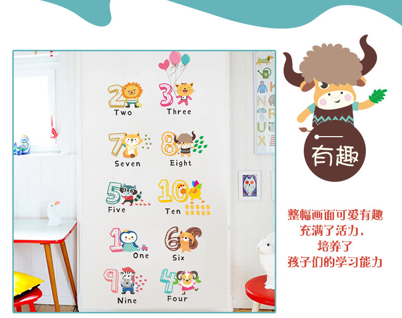 儿童幼儿园创意可爱卡通趣味动物数字英文环保可移除背景装饰墙贴