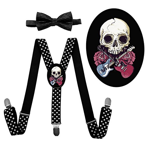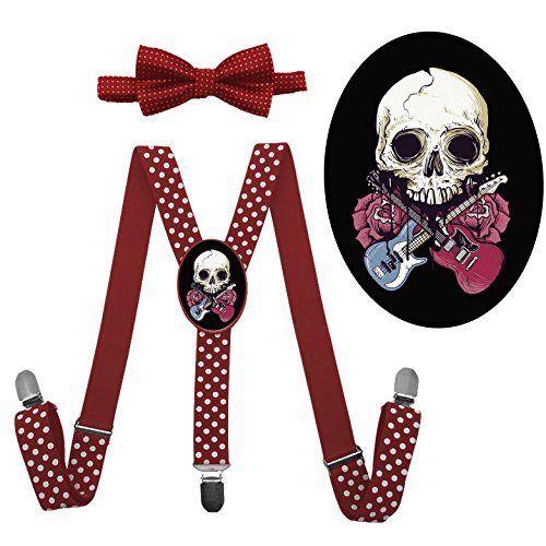 (QZ-Lee)/Accessories/Suspenders Cummerbunds/DIRECT FROM USA/QZ-Lee Rose Guitar Skull Suspender Bow Tie/Unisex Suspender/Adjustable Suspender/Y-Back Suspender