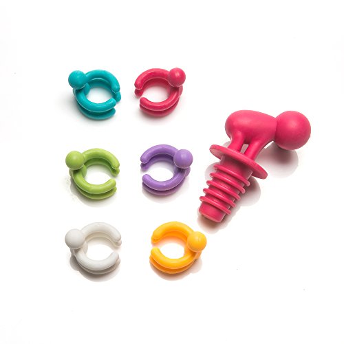 - Includes one universal silicone wine bottle stopper and a set of 6 wine glass markers from mollitiem