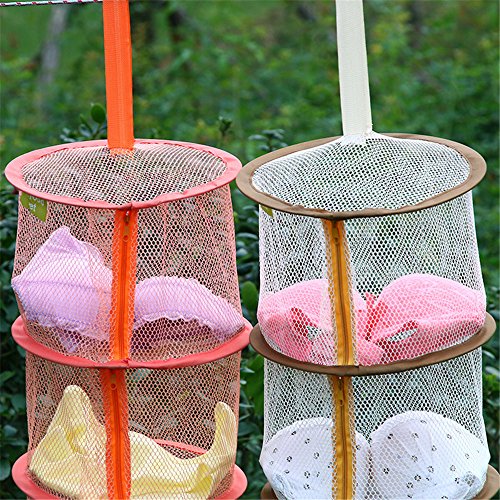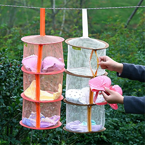 3 Shelves Hanging Mesh Drying Net Basket , Outdoor Kitchen Dish Food Hanging Drying Net , Foldable Storage Basket Drying Rack for Bra, Lingerie, Socks, Tights, Stockings, Underwear(1 PC Orange)
