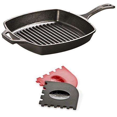 -. Title : Lodge L8SGP3 Pre-Seasoned Cast-Iron Square Grill Pan and Grill Pan Scraper Bundle