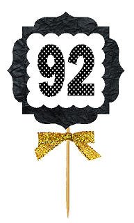 92nd Birthday / Anniversary Gold Ribbon Hand Crafted Novelty Cupcake Decoration Toppers / Picks -12ct