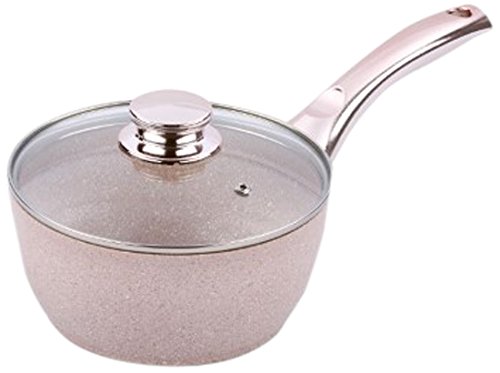 - This High Quality Aluminum Sauce Pan With Natural Stone rose Finish Comes with Metal Handle and Glass Lid