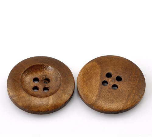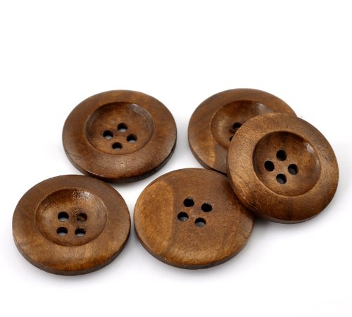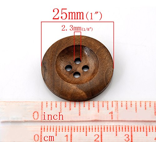 Bottle Caps, Beads and More (Tm) 50PC 25mm (1 Inch) Coffee 4 Hole Round Wood Buttons Scrapbooking Sewing Buttons