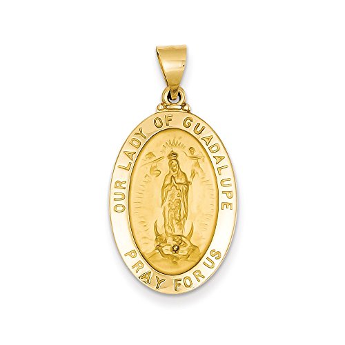 14k Polished and Satin Our Lady of Guadalupe Medal Pendant. Material: Primary - Purity:14K|Length of Item:28 mm|Feature:Hollow|Manufacturing Process:Die Struck|Material: Primary:Gold|Width of Item:16 mm|Product Type:Jewelry|Jewelry Type:Pendants & Charms|Bail Width:4 mm|Material: Primary - Color:Yellow|Bail Length:6 mmFeature