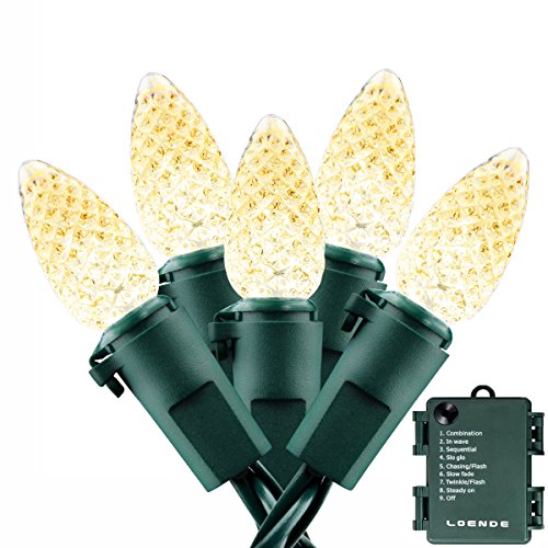 Christmas Lights Outdoor String Lights - LOENDE Fairy Lights Battery Operated String Lights 50 Led String Lights C3 Strawberry Lights for Christmas Tree Wreath Garden, 18ft, Waterproof, Warm White