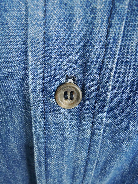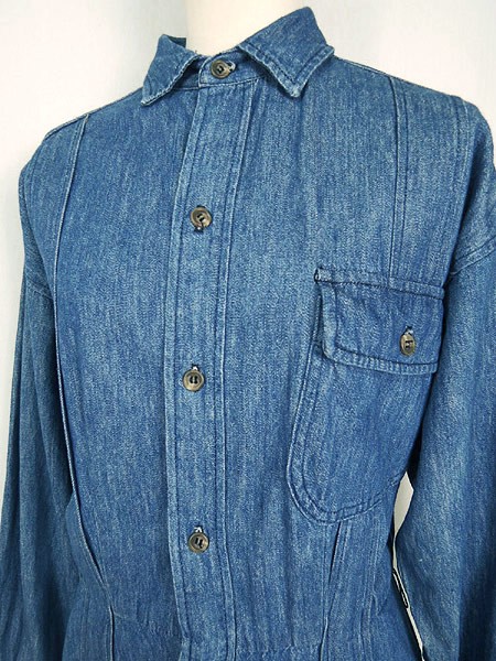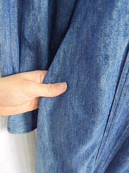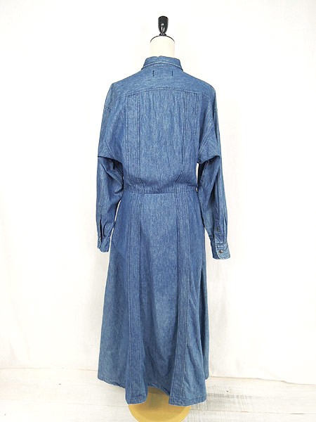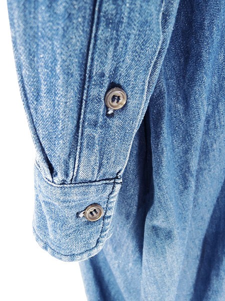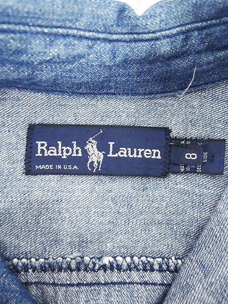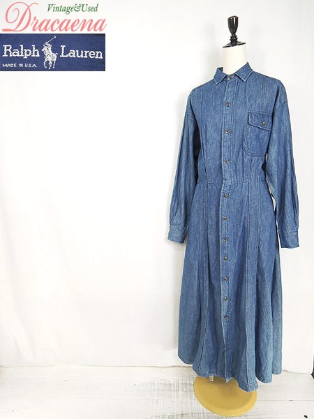 USA製ラルフローレン。フロント前開きなので、羽織りのようにも使って頂けるシャツワンピです。シンプルで使いやすいブルーデニム。ウェスト両脇にベルトループ(紐)あり。