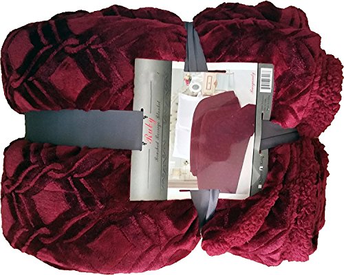 Fancy Collection Queen/king Size Embossed Blanket Sumptuously Soft Plush Sollid Burgundy with Sherpa Revirsable Winter Blankets Bedspread Super Soft New