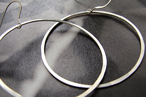 -. Title : Large Silver Hoop earrings, simple Hoop everyday sterling silver earrings - hammered sterling silver hoops