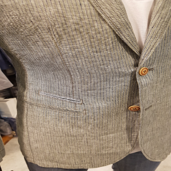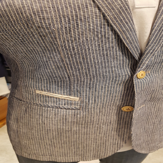 가먼트바이오워싱. 린넨100% 스트라이프 패턴 소재로 린넨 특유의 자연스러운 컬러감과 구김이 더욱 세련된 제품.